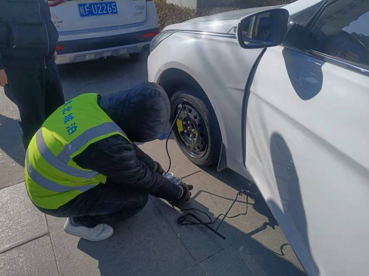 近日,市人民醫(yī)院停車場班組在日常維持場內(nèi)交通中發(fā)現(xiàn)一輛即將駛出停車場的白色轎車左前輪胎爆胎,嚴(yán)重影響行車安全,隨即引導(dǎo)車輛靠邊停車,詢問后得知這一對(duì)駕車來醫(yī)院探望病人的年輕夫妻竟對(duì)爆胎的事情全然不知,駕駛員小伙子是新手也不知道如何更換備胎。班長吳懷松同志當(dāng)機(jī)立斷,從黨員愛心服務(wù)站中拿出千斤頂和充氣泵,指揮人員以最快的速度更換了備胎、補(bǔ)足了胎壓,并叮囑他們到最近的維修點(diǎn)補(bǔ)胎或更換新輪胎,保證行車和人身安全。