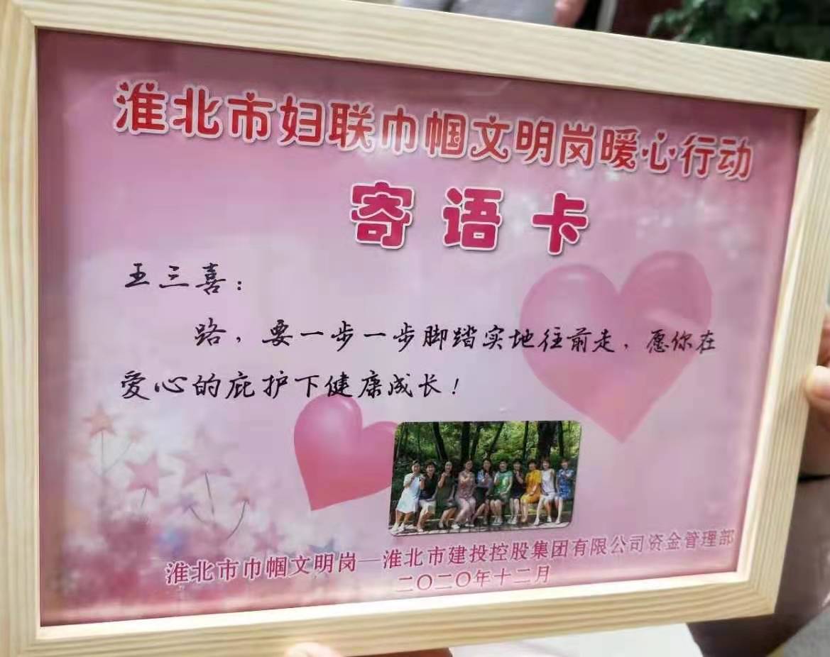 圖為12月10日市建投集團資金管理部代表參加淮北市“巾幗文明崗暖心行”活動——走進百善,為百善鎮(zhèn)16 名貧困兒童送去圖書、學習用具以及勵志寄語,溫暖了貧困兒童的心。