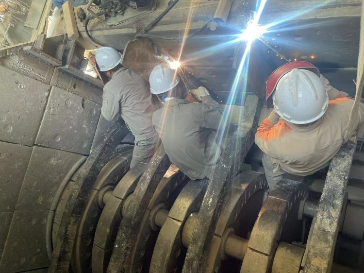 此次設(shè)備搶修攻堅(jiān)戰(zhàn)可謂是時(shí)間緊、任務(wù)重,由于空間狹小,不僅給焊接工作帶來極大的難度,而且危險(xiǎn)性極大,需要長(zhǎng)時(shí)間保持一個(gè)姿勢(shì),有的員工全身僵硬仍在咬牙堅(jiān)持,再加上夜間施工能見度低,精神易疲憊等等諸多不利因素也給整個(gè)搶修工作帶來了極大的困難!