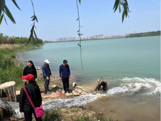 為改善水域生態(tài)環(huán)境,養(yǎng)護(hù)水生生物資源,2023年4月26日,南湖公園公司配合淮北市水產(chǎn)技術(shù)中心在中湖南岸開展魚類增殖放流活動,近5萬尾放流魚類被放入中湖水域。