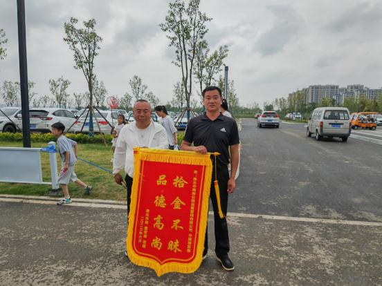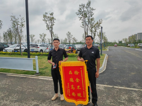 2023年6月17日晚上8點(diǎn),南湖公園公司中湖項(xiàng)目部保安趙新代在金沙戲水沙灘巡查當(dāng)中撿到價(jià)值九千多塊的蘋果手機(jī)一部,第一時(shí)間將情況匯報(bào)至公司物業(yè)群里,并積極主動嘗試聯(lián)系失主。通過多方打聽當(dāng)晚終于物歸原主,失主找回手機(jī)后十分激動,為了表示感謝,失主第二天送來錦旗一面。