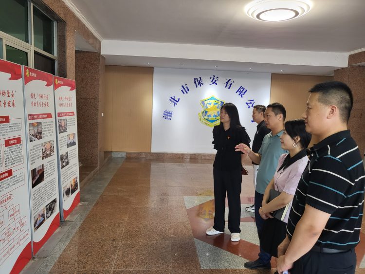 近日,小貸黨支部書(shū)記趙瑩瑩帶領(lǐng)支部黨員前往淮北市保安有限公司黨總支參觀(guān)交流黨建工作。