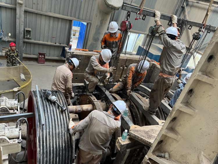 得知情況,機修班長及公司領導立即趕赴現(xiàn)場對故障設備進行了全面排查和分析,制定搶修計劃,對搶修過程進行詳細確認,安全注意事項進行強調(diào)后,立即下令拆機!