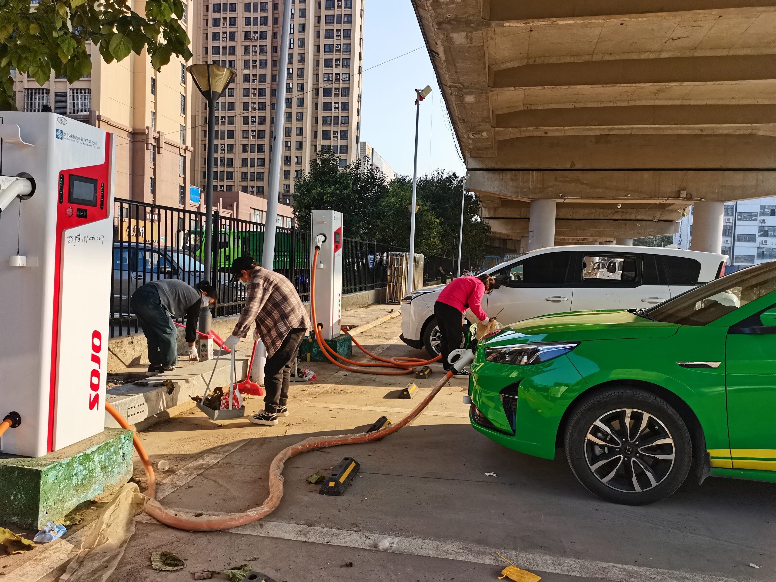 當天,城泊員工來到長山路橋下停車場,開展清掃活動,大家拿起掃把、鐵鍬全身心投入到大掃除中。職工們有的彎腰撿拾廢紙和垃圾,有的奮力清掃路面,有的來回清運垃圾,有的擦拭新能源充電樁的灰塵。大伙齊心協(xié)力認真細致, 個個干勁十足,不怕臟,不怕累,對任何一處垃圾都不放過,分區(qū)域逐步清理停車場的衛(wèi)生死角,大大提高了現(xiàn)場工作效率,確?,F(xiàn)場品質上臺階,努力打造出新能源汽車充電驛站示范點。