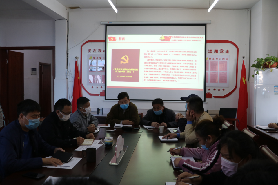 城泊公司黨支部組織黨員干部集中學(xué)習(xí)《中國共產(chǎn)黨國有企業(yè)基層組織工作條例(試行)》