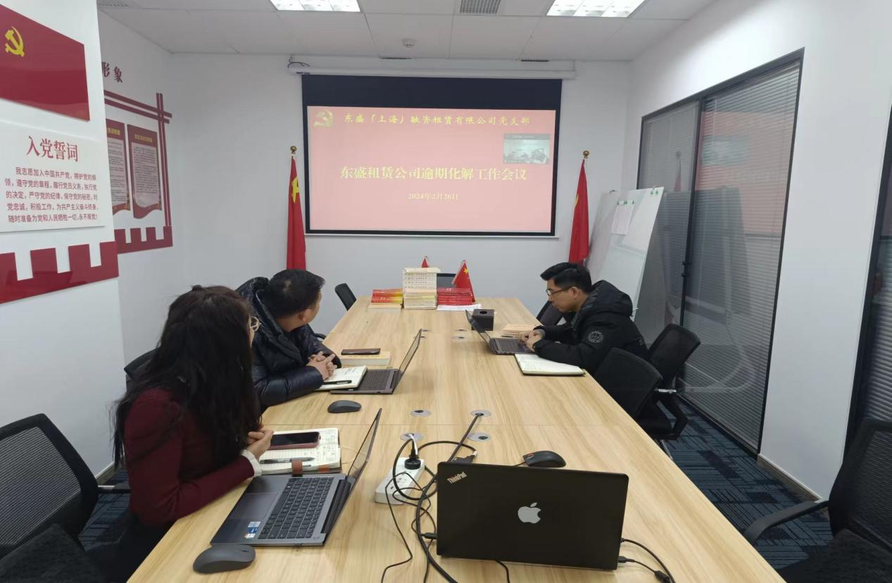 為有效控制公司業(yè)務(wù)風(fēng)險(xiǎn),東盛租賃公司組織業(yè)務(wù)人員對(duì)現(xiàn)有存量業(yè)務(wù)進(jìn)行了全面梳理和排查,并成立逾期項(xiàng)目化解小組,積極做好存量項(xiàng)目風(fēng)險(xiǎn)的防范和管控。2024年2月26日,東盛租賃公司總經(jīng)理、逾期項(xiàng)目化解小組組長何曉璐就目前風(fēng)險(xiǎn)項(xiàng)目組織召開了逾期化解工作會(huì)議,專門研究部署風(fēng)險(xiǎn)化解事宜。