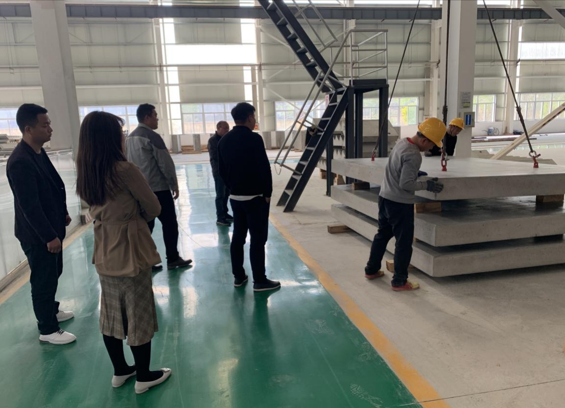 圖為現(xiàn)場考察安徽中冶淮海裝配式建筑有限公司標準化生產(chǎn)車間。