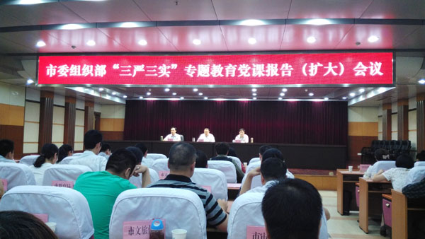 按照全市“三嚴(yán)三實”專題教育部署安排,結(jié)合“弘揚沈浩精神、建設(shè)模范部門”主題實踐活動,5月20日下午,市委組織部召開“三嚴(yán)三實”專題教育黨課報告(擴大)會議。市委常委、市委組織部部長、市政府常務(wù)副市長沈光繼出席會議,并為全市組工干部上了一堂生動的黨課。