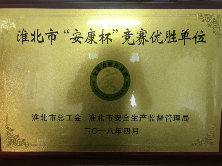 2017年,市總工會、市安全生產(chǎn)監(jiān)督管理局在全市開展了以“安全培訓(xùn)提素質(zhì)、班組管理強(qiáng)基礎(chǔ)”為主題的“安康杯”競賽活動?;幢笔薪ㄍ犊毓杉瘓F(tuán)有限公司為保障企業(yè)的安全生產(chǎn)及職工的安全健康,充分調(diào)動廣大職工參與群眾性安全生產(chǎn)活動的積極性、主動性和創(chuàng)造性,認(rèn)真貫徹落實黨的十九大精神,在集團(tuán)公司范圍內(nèi)開展2017年度“安康杯”競賽活動,在安全生產(chǎn)工作中取得了優(yōu)異成績,被淮北市總工會和淮北市安全生產(chǎn)監(jiān)督管理局評為淮北市“安康杯”競賽優(yōu)勝單位。