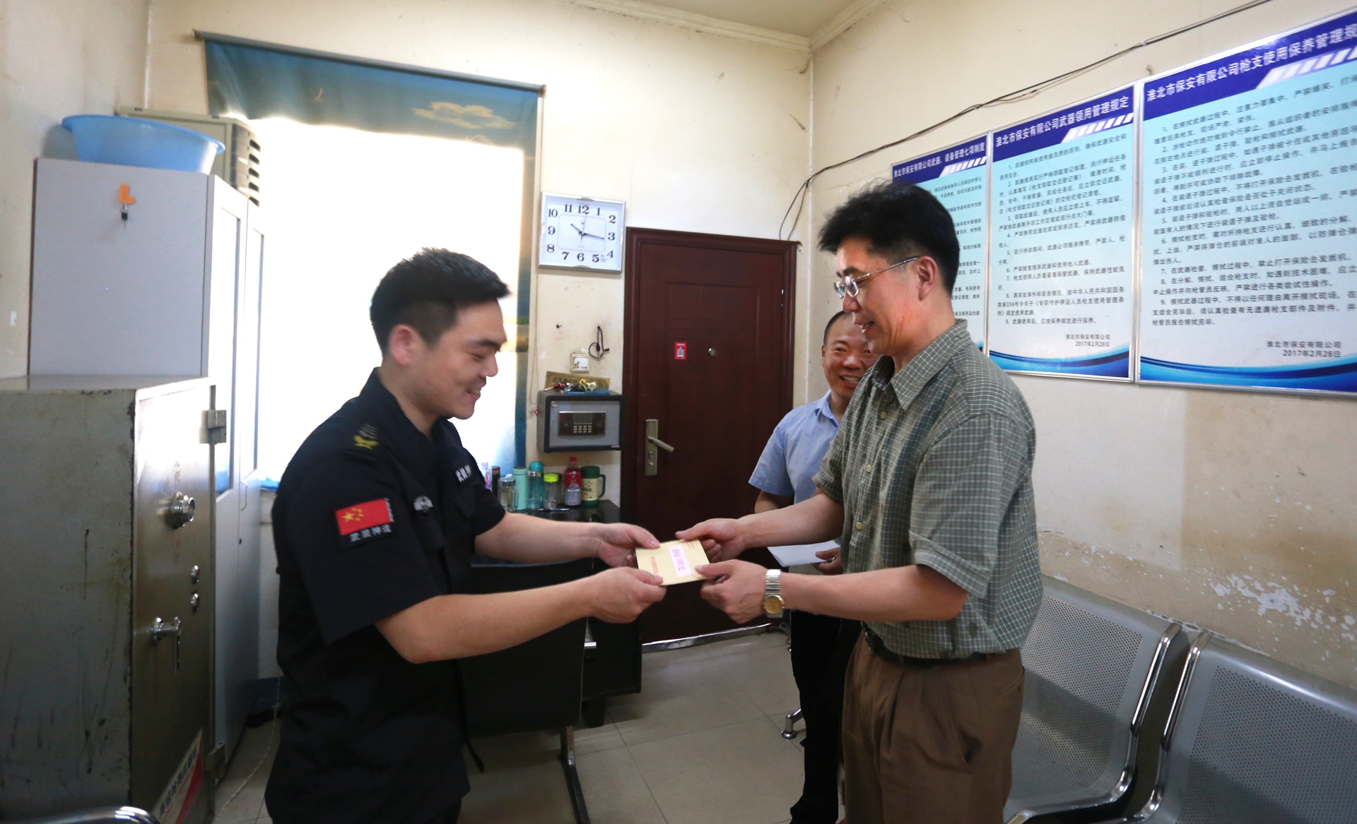為了讓貧困黨員感受到集團(tuán)公司大家庭的關(guān)懷和溫暖,7月13日上午,集團(tuán)公司黨委委員、紀(jì)委書記王獻(xiàn)忠和法律部副部長余永明來到保安公司押運一中隊,為貧困黨員送去慰問金和祝福。