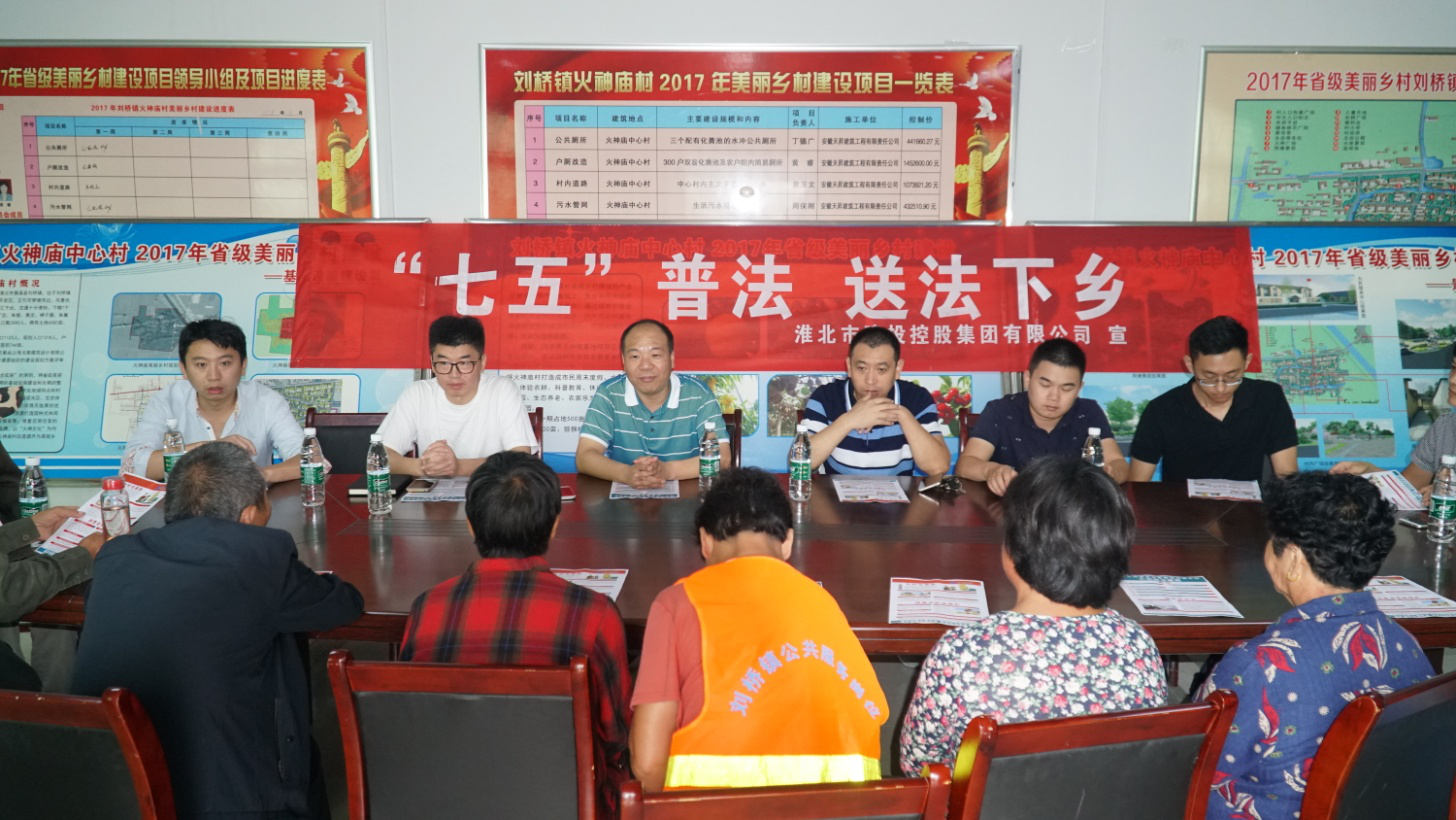 9月14日上午,淮北市建投集團(tuán)“七五普法,送法下鄉(xiāng)”活動小組,來到濉溪縣劉橋鎮(zhèn)火神廟村,深入開展法律扶貧活動,為困難群眾送去法律宣傳,現(xiàn)場發(fā)放宣傳資料。