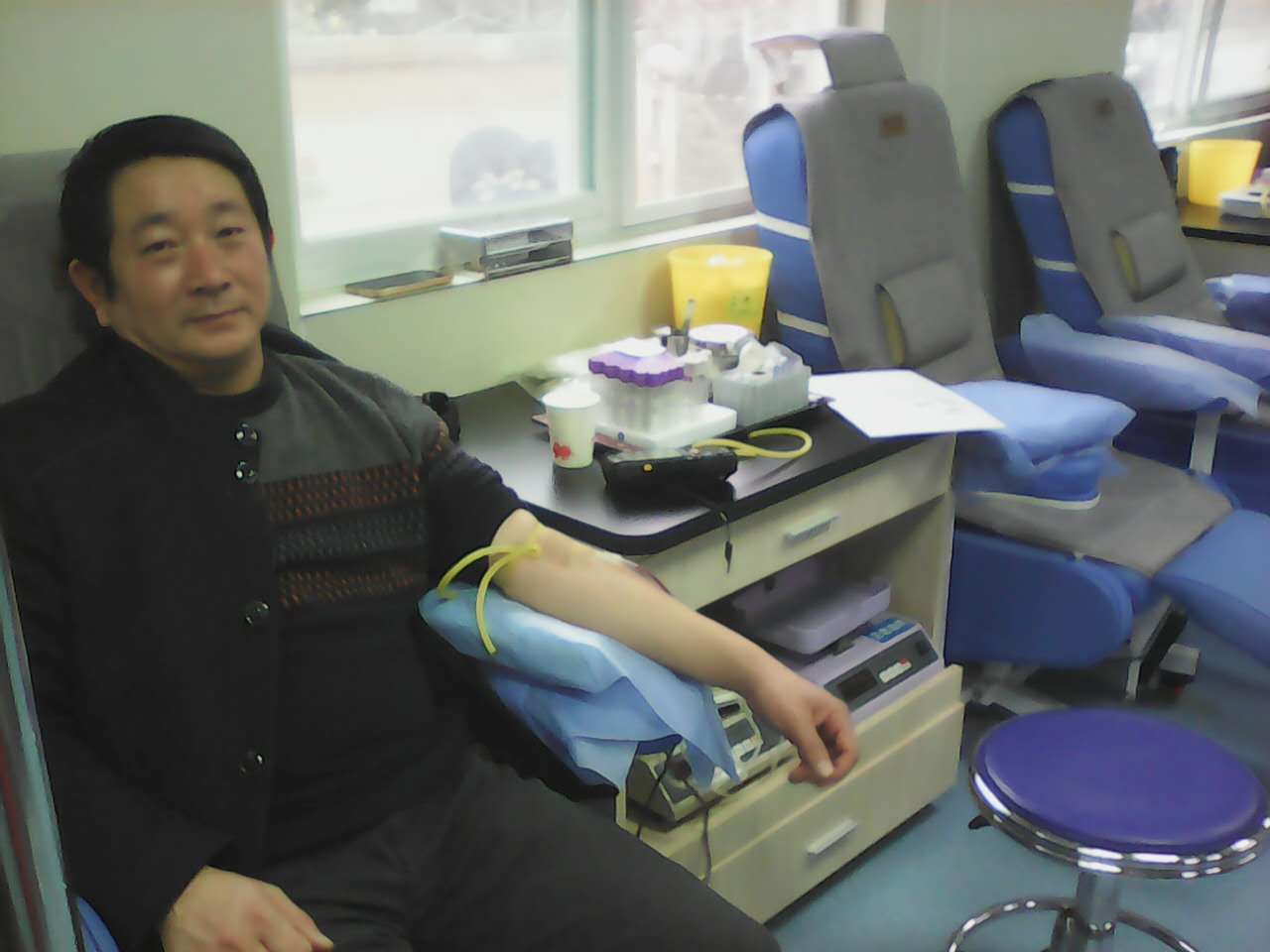 1月22日,汽運(yùn)公交二公司營(yíng)運(yùn)部(劉俊峰)、收銀部(李勇)兩名同志在市中心血站無償獻(xiàn)血。據(jù)劉俊峰同志介紹,他最初對(duì)獻(xiàn)血完全不了解,還是因?yàn)榕笥炎≡杭毙栌醚?,聽了醫(yī)生的介紹才知道血液這么急缺。于是他就開始加入到無償獻(xiàn)血的隊(duì)伍當(dāng)中,至今他已經(jīng)連續(xù)獻(xiàn)血三千多毫升,幾年來從未間斷,雖然他們獻(xiàn)出的血是有限的,但他們的愛是無限的。