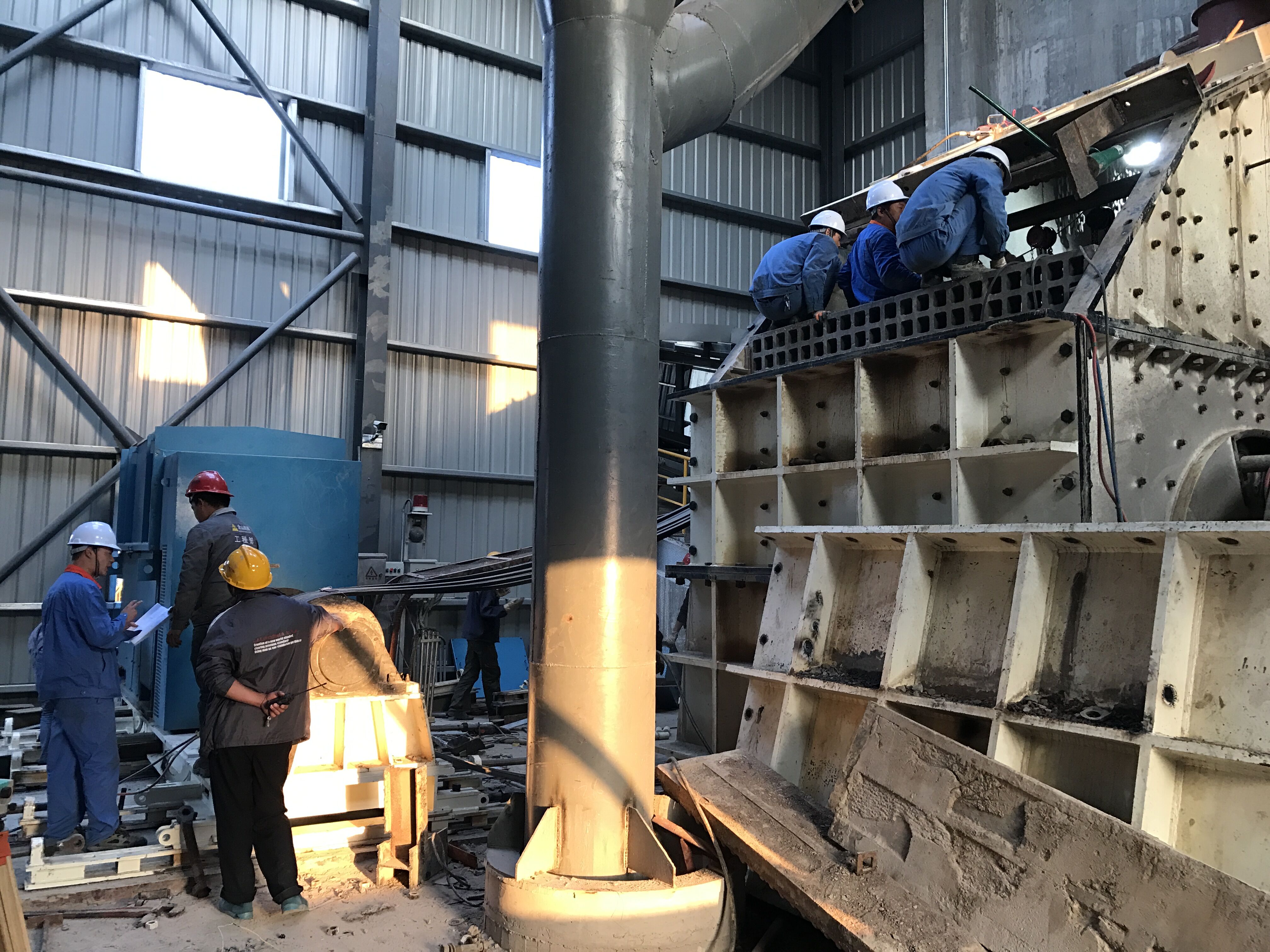 10月26日上午,通鳴礦業(yè)生產(chǎn)部對生產(chǎn)線上的破碎機(jī)展開檢測維修。以機(jī)修工為主、其他工種為輔,大家相互配合、分工明確,一絲不茍的檢測破碎機(jī)的每一處,不放過任何一個細(xì)節(jié),更換了破碎機(jī)的錘頭、錘軸和蓬條。本次檢測維修保障了破碎機(jī)的正常運(yùn)作。