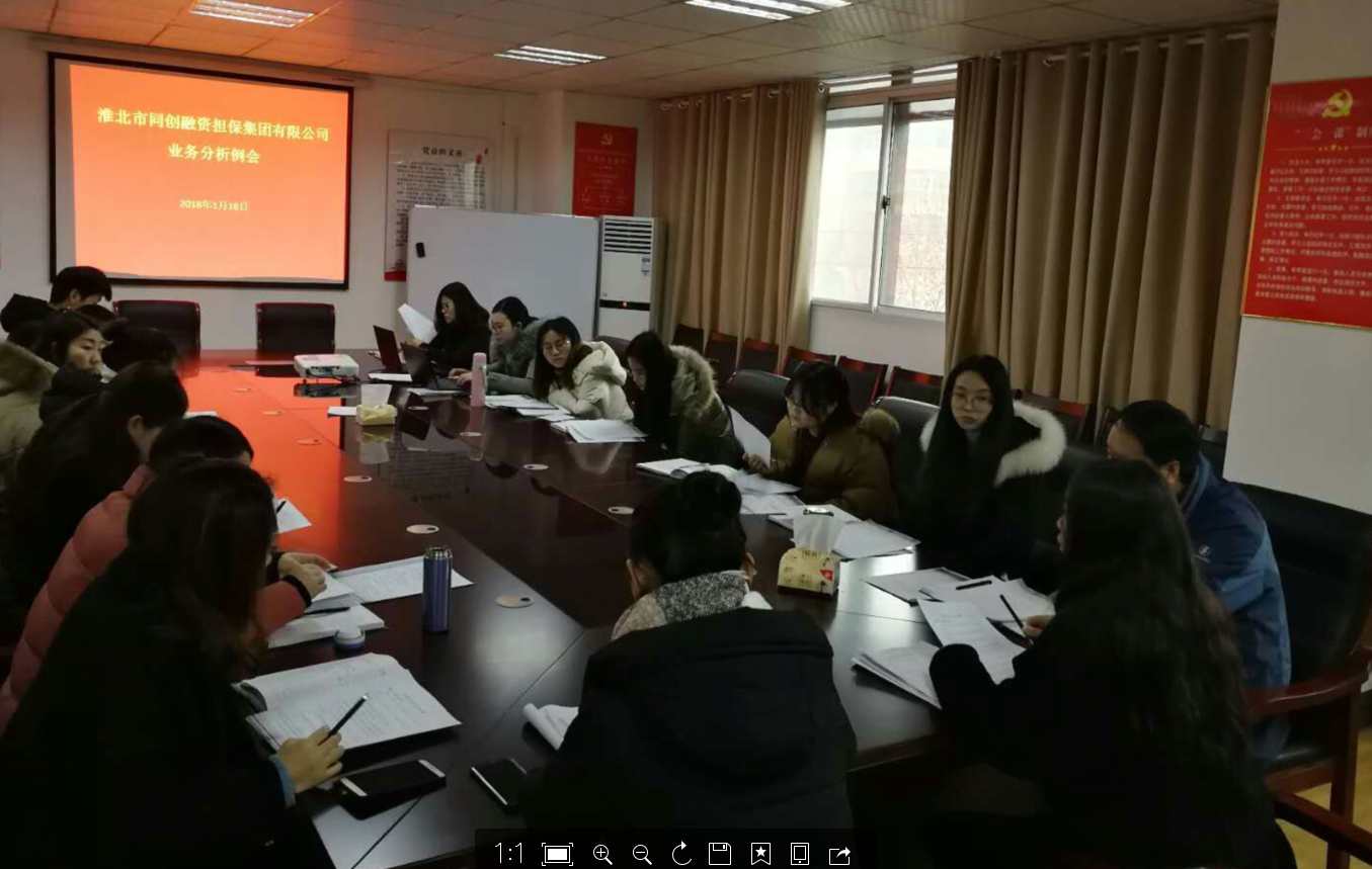 1月18日,市同創(chuàng)融資擔(dān)保集團(tuán)業(yè)務(wù)部召開部門周例會,會議由業(yè)務(wù)一部部長李壯志、副部長徐欣主持。會議學(xué)習(xí)研究了《小微企業(yè)比例再擔(dān)保合作協(xié)議》和《2017年度全省融資擔(dān)保行業(yè)發(fā)展與監(jiān)管工作暨業(yè)務(wù)培訓(xùn)會議》相關(guān)內(nèi)容。