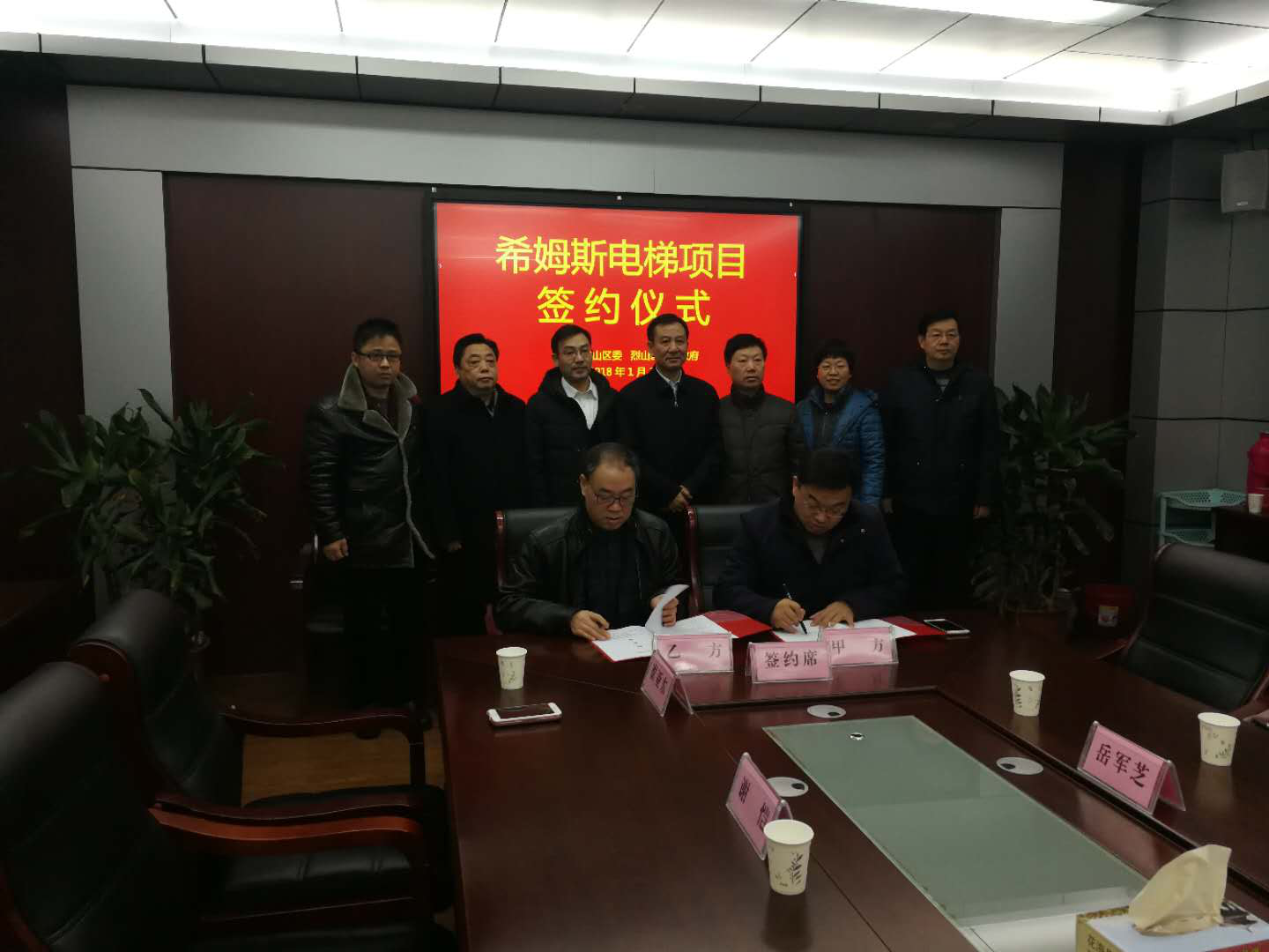2018年1月30號(hào)上午,希姆斯電梯(淮北)有限公司與希姆斯電梯(中國(guó))有限公司在淮北市建投集團(tuán)簽定了《希姆斯電梯項(xiàng)目簽約協(xié)議》?;幢笔辛疑絽^(qū)區(qū)委書(shū)記張力、區(qū)人大主任陳琳、區(qū)長(zhǎng)岳軍芝、區(qū)委副書(shū)記馬建國(guó)以及副區(qū)長(zhǎng)鄧頂宇出席了此次簽約儀式,希姆斯電梯(中國(guó))有限公司CEO龐文岳、市建投集團(tuán)總經(jīng)理助理周開(kāi)宇、希姆斯電梯(淮北)有限公司CEO崔亞?wèn)|、總經(jīng)理謝愷以及負(fù)責(zé)人劉波共同見(jiàn)證了這一歷史性的時(shí)刻。