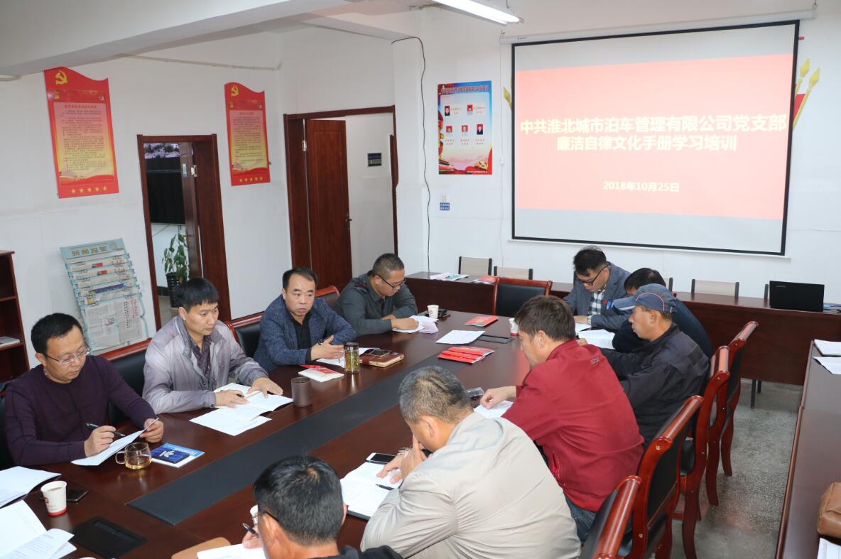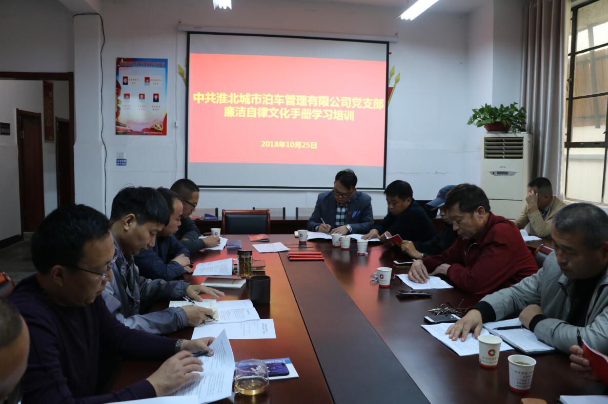 城泊公司黨支部組織學習《淮北城市泊車管理有限公司廉潔自律文化手冊》