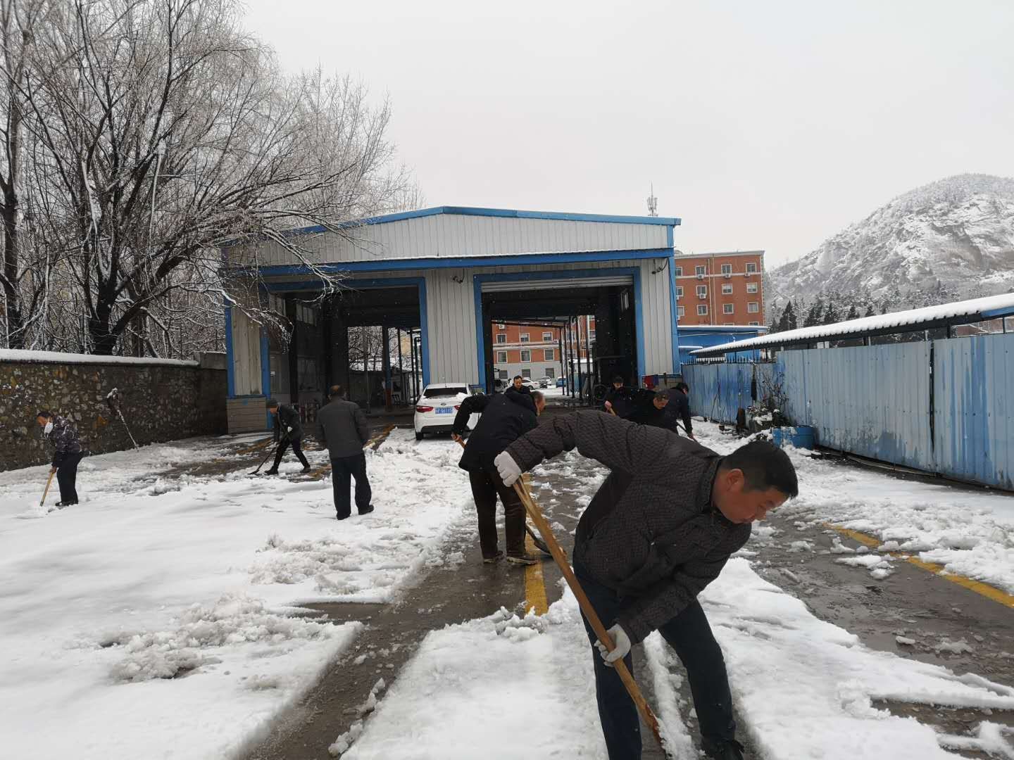 大家手拿鐵鍬、掃帚等除雪工具,對檢測站院內(nèi)積雪進行清掃。雖然天寒地凍,雪水浸濕了鞋襪,但也毫不在意,勞動熱情積極高漲。此次掃雪活動,不僅避免了車輛因雪天不能檢測而脫審,還保障了檢測安全。