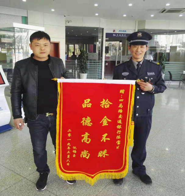 故事發(fā)生在2019年3月4日上午,陳寶生和往常一樣,在交行網(wǎng)點(diǎn)進(jìn)行執(zhí)勤,著突然發(fā)現(xiàn)營(yíng)業(yè)廳門(mén)內(nèi)側(cè)有一個(gè)紅色塑料袋,走近一看,里面物品整齊,來(lái)不及多想,老陳手握著塑料袋,下意識(shí)的環(huán)顧了四周,并沒(méi)看見(jiàn)失主,是誰(shuí)不小心把東西都丟在這兒了。鎮(zhèn)定一下之后立即上報(bào)中隊(duì),老陳想包里會(huì)不會(huì)有一些證件之類(lèi)的東西,或許能找到一些失主的線索也不一定。就和班長(zhǎng)一起小心翼翼的打開(kāi)了袋子,發(fā)現(xiàn)里面都是些合同文件和借條、憑證,價(jià)值等額有200多萬(wàn)。老陳先把包妥善放好,然后通過(guò)調(diào)取監(jiān)控、在網(wǎng)點(diǎn)門(mén)口留下信息等方式,積極主動(dòng)尋找失主。功夫不負(fù)有心人終于在下班前與失主倪先生取得聯(lián)系,認(rèn)領(lǐng)物品時(shí)倪先生激動(dòng)的熱淚盈眶,上前緊緊握住了陳寶生的雙手,說(shuō):“謝謝……真是太感謝了!我找了好幾天,都是一無(wú)所獲,如果這個(gè)包丟失,將造成200多萬(wàn)元的損失,沒(méi)想到遇到了您,讓我說(shuō)什么好啊!馬上拿出一疊現(xiàn)金送給老陳”