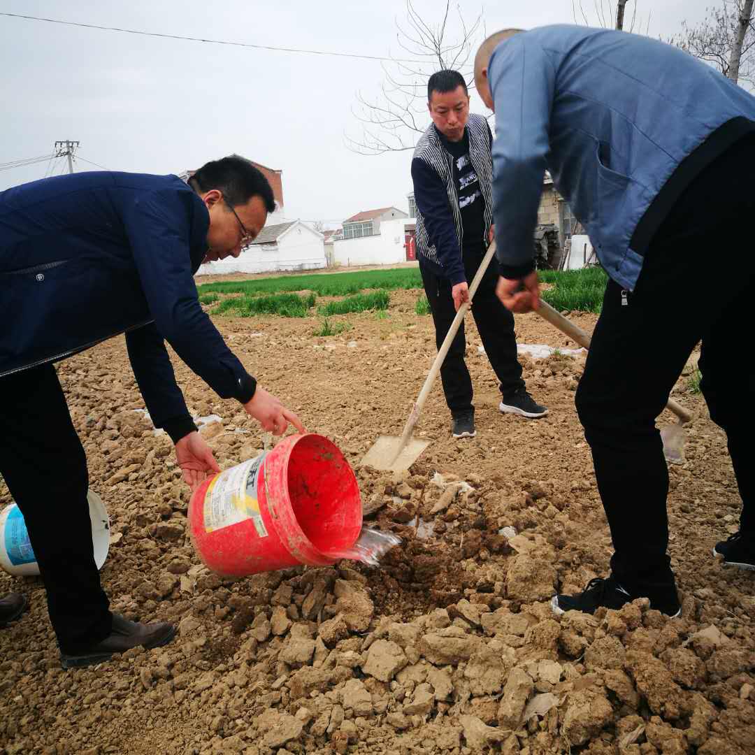 扶貧果樹不能一種了之–城泊公司組織黨員干部為扶貧戶果樹施肥養(yǎng)護(hù)