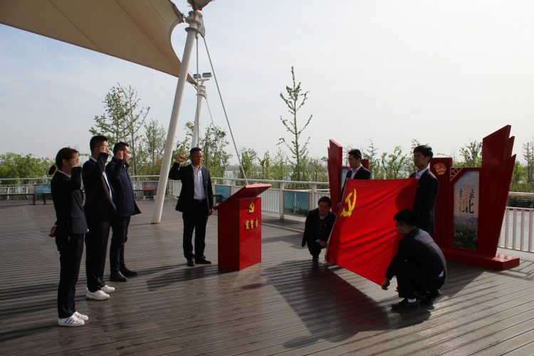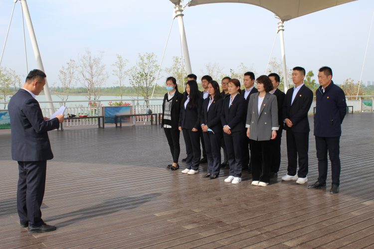 4月27日,融通黨支部組織黨員及支部新發(fā)展的黨員前往綠金湖圓夢(mèng)島舉行了莊嚴(yán)而隆重的黨員宣誓活動(dòng)。在融通黨支部副書記馬振林的帶領(lǐng)下,支部3名新發(fā)展黨員面對(duì)黨旗莊嚴(yán)宣誓,短短一百多字的誓言是他們對(duì)黨的承諾,是他們一生銘記的宣言。